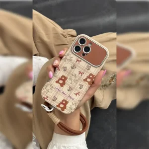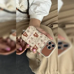 کاور قاب گارد مدل خرس کوچولو چهارخونه Little Bear Plaid with Band مناسب برای گوشی موبایل آیفون iPhone 16
