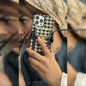 کاور قاب گارد مدل سلین پارچه ای جاکارتی همراه با بند بلند ست Céline Jakarti With Band مناسب برای گوشی موبایل آیفون iPhone 16